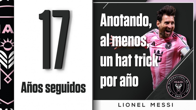 梅西连续17年戴帽: