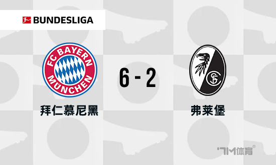 下半场伤停补时6分钟,全场比赛结束,最终拜仁6-2弗赖堡。