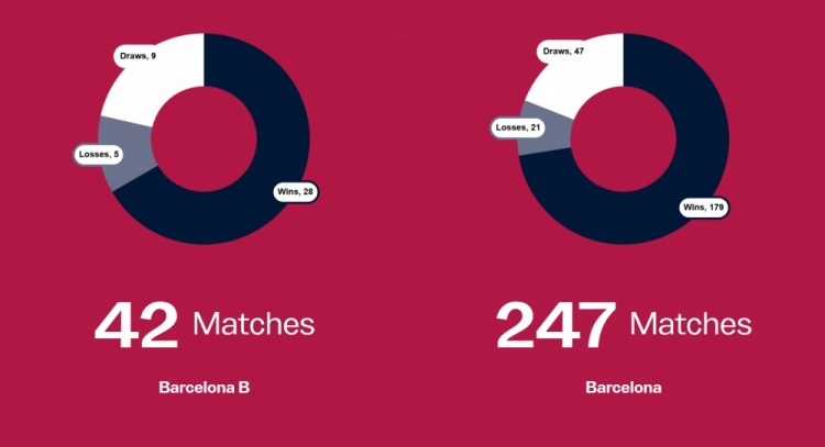 瓜迪奥拉执教巴萨B队及巴萨期间的执教场次、胜率,以及他在08/09赛季至11/12赛季率领巴萨在西甲取得的净胜球数与积分