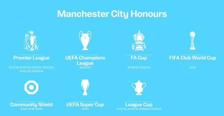 目前瓜迪奥拉率领曼城所取得的荣誉