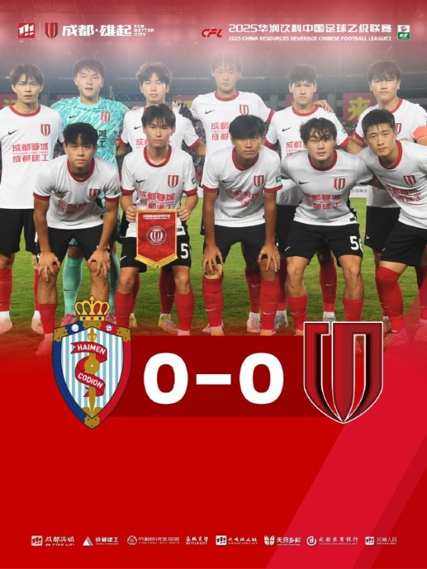 中乙第28轮(决赛阶段第6轮),成都蓉城B队客场0-0海门珂缔缘10月4日19:30,2025华润饮料中乙联赛第28轮(决赛阶段第6轮),成都蓉城B队客场挑战海门珂缔缘。上半场,成都蓉城B队主打防守反击,虽有机会却未能把握,半场比分定格为0-0。下半场一开始,成都蓉城B队便连换三人进行调整,但新阵容虽加强了进攻压迫,却始终未能打破对方防线足球俱乐部球迷社区,而迎来中乙首秀的门将王子杰,凭借多