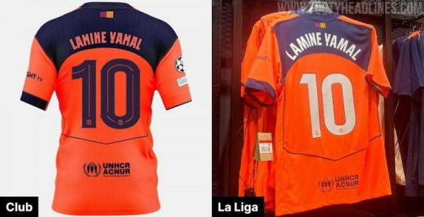 变丑了?巴萨第三球衣只能印白色字体,看起来效果差多了足球球员数据分析 9月19日讯 著名足球装备网站FootyHeadlines报道,巴萨第三球衣身后印字因为西甲规定只能使用白色字体,效果看起来差多了。 今天凌晨,巴萨在欧冠赛场首次亮相了2025-26赛季第三客场球衣,其字体采用海军蓝与橙色的搭配。这种设计在绿茵场上显得恰到好处且视觉冲击力十足。然而根据西甲联赛的装备规定,该字体