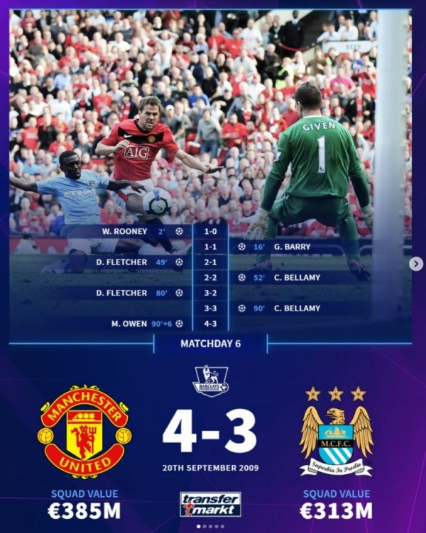 德转列近年曼市德比经典对决:曼城6-1大胜,曼联足总杯夺冠在列足球球员技术视频 9月14日讯 本轮英超将迎来焦点战曼市德比,德转也盘点了两支球队在近些年的一些经典比赛,具体如下: 曼联4-3曼城,2009年9月 曼城1-0曼联,2012年4月 曼联1-6曼城,2011年10月 曼城6-3曼联,2022年10月 曼城1-2曼联足球球员技术视频,2024年6月
