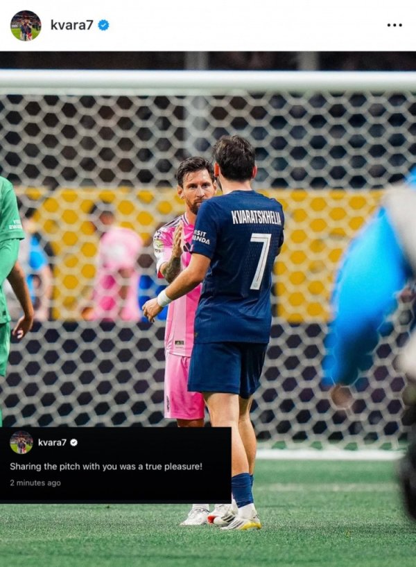 克瓦拉茨赫利亚社媒晒同梅西合照:很荣幸能和你同场竞赛6月30日讯 巴黎在世俱杯16强战4-0轻取迈阿密国际,梅西和克瓦拉茨赫利亚均踢满全场。 克瓦拉茨赫利亚也在赛后通过社媒晒出自己和梅西的握手照,并配文:“能够和你同场竞赛 ,是一件令人荣幸的事!”