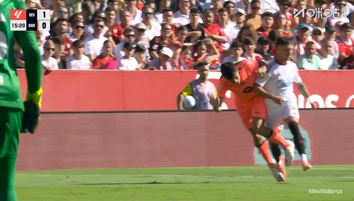 10月05日讯 塞维vs巴萨第16分钟,巴萨左后场球员马丁左路防卫 中放倒对手,英超直播吃到一张警告 。