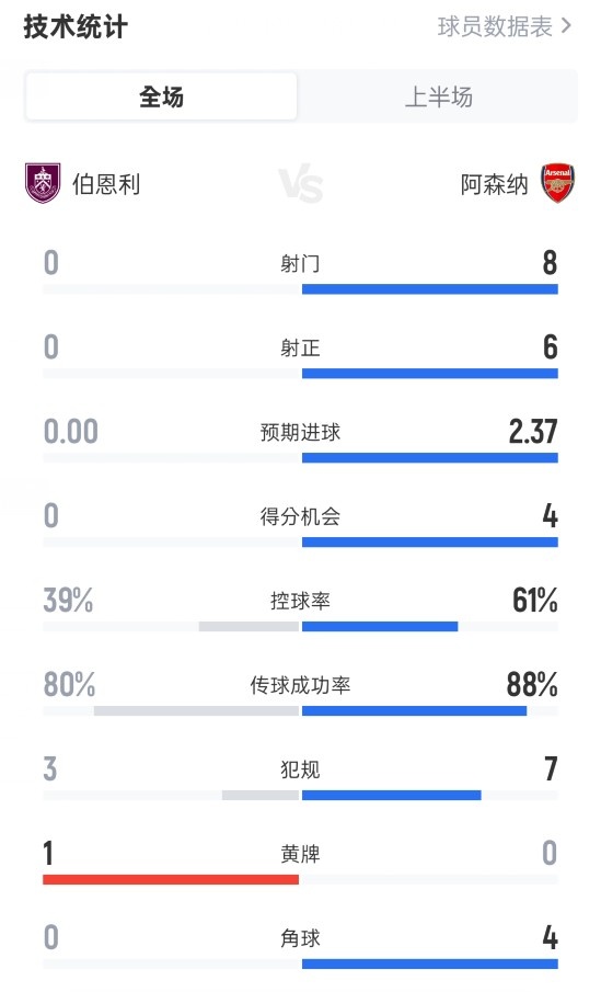 11月1日讯 2025-26赛季英超职业联赛 第10轮,伯恩利主场作战 迎战阿森纳,英超免费高清直播上半场伯恩利0-2阿森纳。