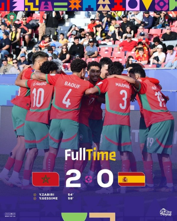 开门红!世青赛小组赛首轮,摩洛哥2-0击败西班牙9月29日讯 世青赛小组赛首轮赛事 ,摩洛哥击败西班牙。 此役上半场两队均无建树,下半场扎比利、亚辛为摩洛哥破门,最终摩洛哥2-0击败西班牙,取得世青赛开门红。 摩洛哥、西班牙、巴西、墨西哥同处世青赛C组。