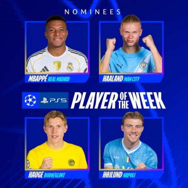 欧冠本周最佳球员候选:姆巴佩、哈兰德、海于格、霍伊伦10月2日讯 欧冠官方列出了本周最佳球员候选名单,姆巴佩、哈兰德领衔。 欧冠本周最佳球员候选: 姆巴佩(皇马)——3球 哈兰德(曼城)——2球 海于格(博德闪耀)——2球 霍伊伦(那不勒斯)——2球