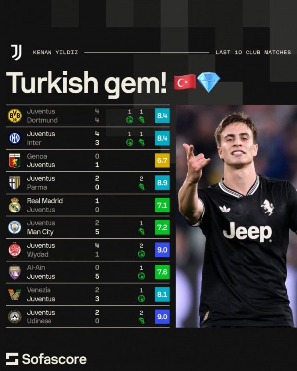 停不下来!20岁伊尔迪兹各项赛事近10场为尤文贡献6球7助攻足球投注安全网站 9月17日讯 尤文在本轮欧冠主场4-4战平多特,伊尔迪兹贡献传射。数据统计显示,他为尤文各项赛事最近10场比赛贡献6球7助攻: 4-4多特,1球1助攻 4-3国米,1球1助攻 1-0热那亚足球投注安全网站 2-0帕尔马,2助攻 0-1皇马 2-5曼城,1助攻 4-1维达德,2球 5-0艾因,1球 3-2威尼斯,