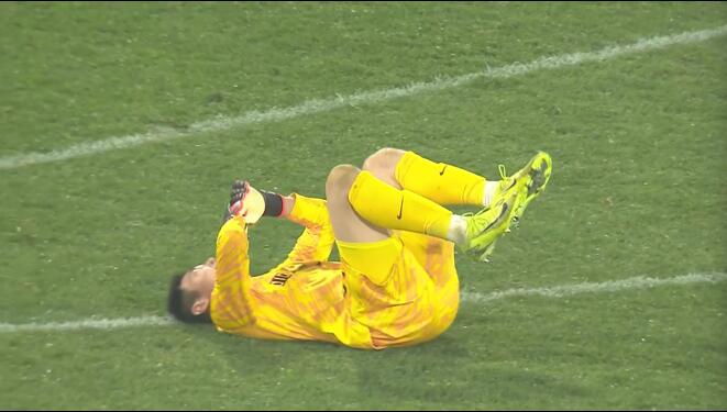 10月25日讯 亚泰补时先丢一球后,守门员王智峰拖延时间染黄,随后他示意抽筋被裁判 警告!