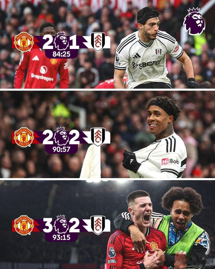 曼联在这场赛事 中依靠卡塞米罗和库尼亚的得分 ,在下半场早段已2比0领跑 富勒姆(富咸),想不到对方在后半段连追两球,球迷们还以为又要3分变1分,但后备 上场的舍什科,在赛事 的补时第4分钟接应布鲁诺·费尔南德斯的传送球 ,为球队献上3比2的致胜球 得分 。