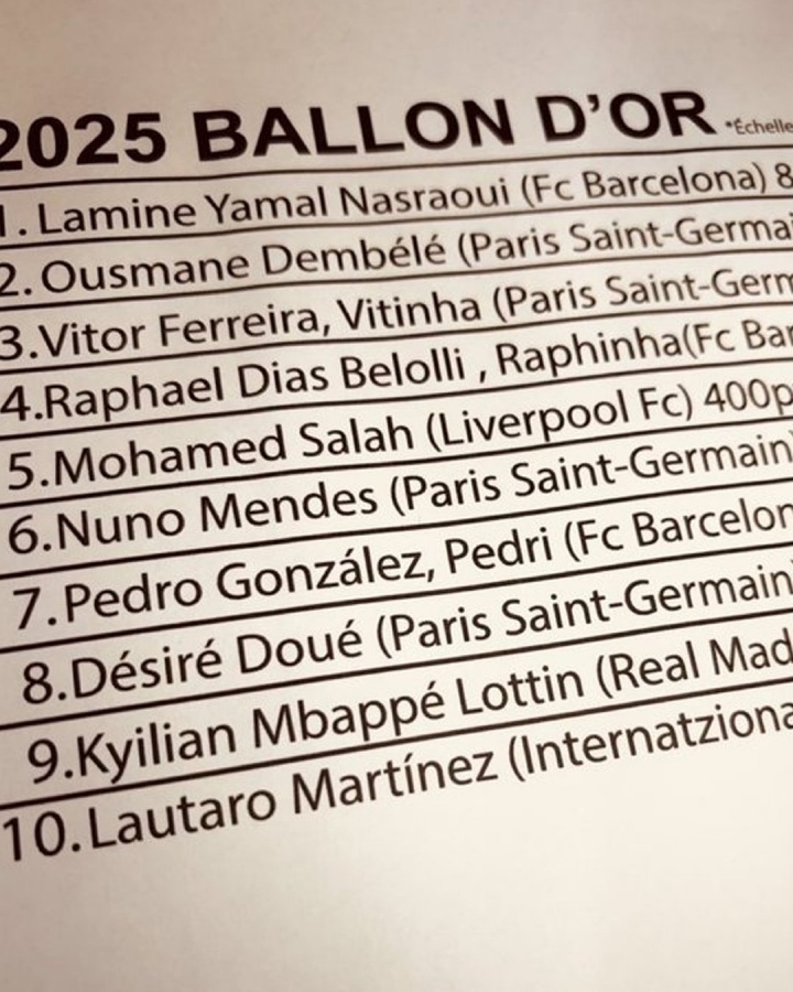目前,英超直播在线高清(无插件)网上已流出一份2025金球奖排名名单,亚马尔力压登贝莱获奖。