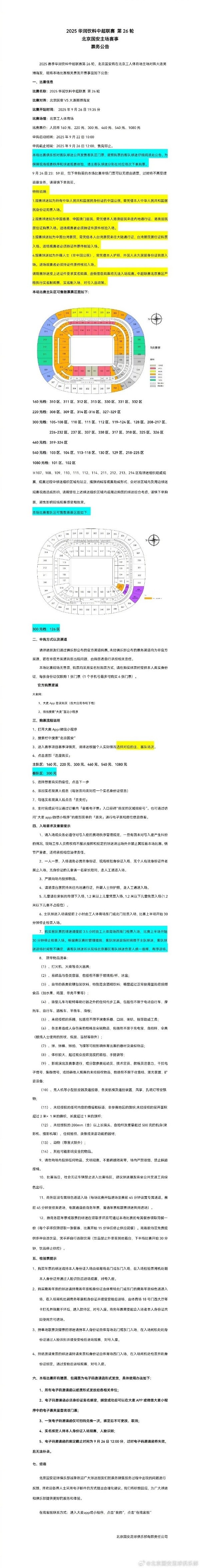 2025华润饮料中超联赛第26轮足球俱乐部球迷互动,北京国安将在北京工人体育场主场对阵大连英博,现将本场比赛相关票务开票事宜如下公告,英超直播请各位球迷详细阅读图中的公告内容。