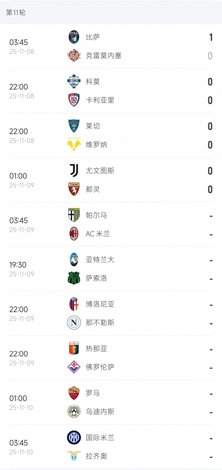 11月9日讯 意甲第11轮,尤文0-0战平都灵。自此,在本轮意甲的前4场赛事 中,英超免费高清直播有3场0-0结束,8支球队总共只进了1个球。