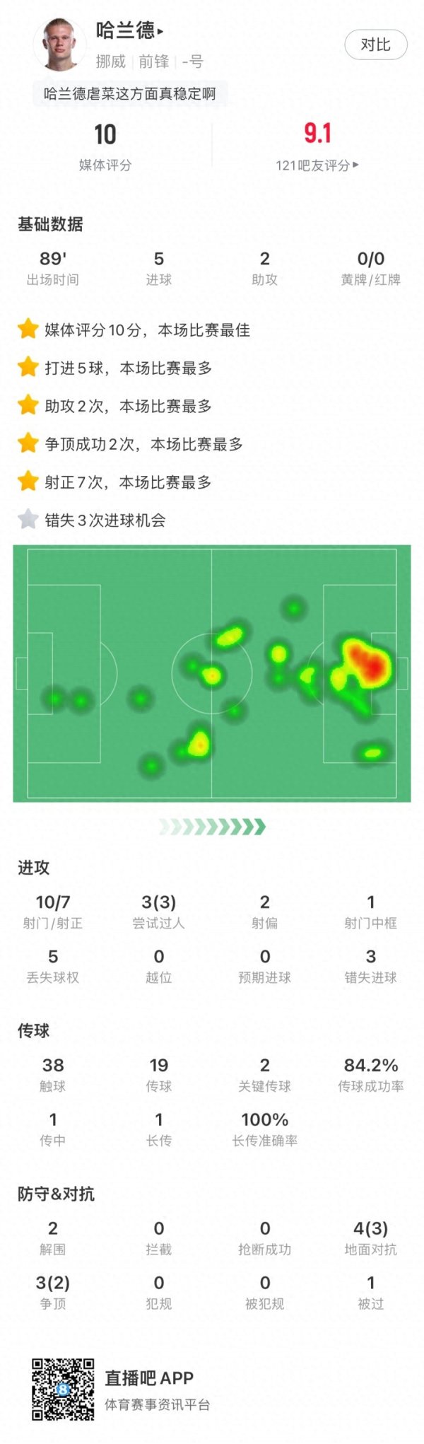 魔人布欧! 哈兰德本场让点+错失3次得分 , 仍5球2助独造7球直播吧09月10日讯 世预赛挪威vs摩尔多瓦,哈兰德本场五子登科,并达成助功 双响,造7球助球队11-1摩尔多瓦! 第11分钟,哈兰德第1球↓ 第36分钟,哈兰德双响↓ 第43分钟,哈兰德戴帽↓ 第52分钟,哈兰德大四喜↓ 第83分钟,哈兰德五子登科!↓ 独家看英超就在咪咕