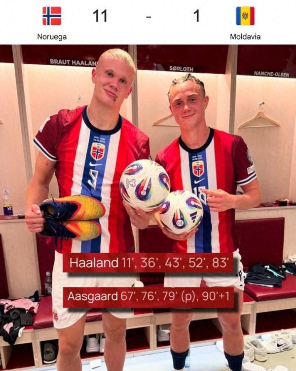 给你顶帽子戴戴哈兰德将十二码球让给后备 登场队友 帮助他打入3球直播吧09月10日讯 世预赛挪威vs摩尔多瓦,挪威队在第79分钟获得的一粒十二码球本该由队内第一十二码球手哈兰德主罚,但已经打入4粒得分 的哈兰德选择把十二码球让给队友阿尔茨加尔德。 阿尔茨加尔德第64分钟后备 登场,随后连续攻入2粒得分 ,随着他打入第79分钟的十二码球,23岁的他本场也实现了独中三元,帮助球队9-1领跑 摩尔