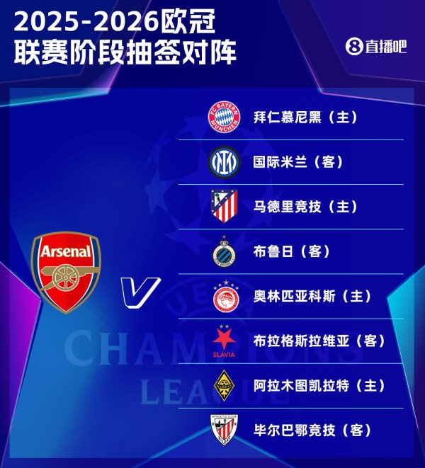 阿森纳欧冠赛程:第3轮战马竞,第5轮主场作战 战拜仁,第7轮客战国米08月30日讯 欧足联官方公布欧冠职业联赛 阶段赛程,阿森纳赛程如下。 阿森纳赛程(以下均为北京时间) 第1轮:9月17日 0:45 毕尔巴尔竞赛 vs阿森纳 第2轮:10月2日 3:00 阿森纳vs奥林匹亚科斯 第3轮:10月22日 3:00 阿森纳vs马竞 第4轮:11月5日 1:45 布拉格斯拉维亚vs阿森纳 第5轮:11