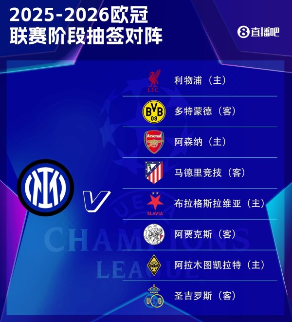 国米欧冠赛程:最后4轮连战马竞、利物浦、阿森纳、多特蒙德08月30日讯 欧足联官方公布了2025/26赛季欧冠职业联赛 阶段的完整赛程,国际米兰的职业联赛 阶段赛程如下。 国际米兰欧冠职业联赛 阶段赛程:(均为北京时间) 第1轮:2025年9月18日3:00 阿贾克斯vs国米 第2轮:2025年10月1日3:00 国米vs布拉格斯拉维亚 第3轮:2025年10月22日3:00 圣吉罗