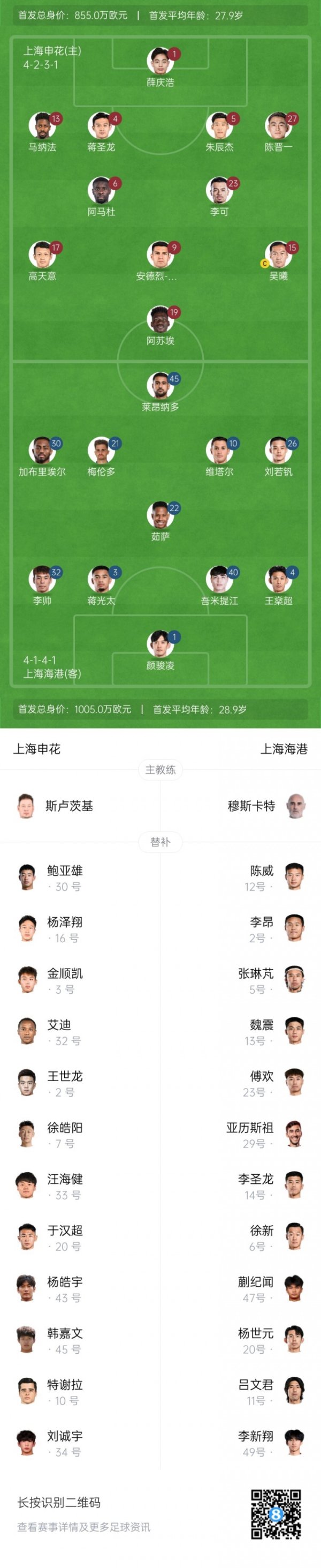申花vs海港首发:高天意、吴曦、李可先发,刘若钒、梅伦多出战08月09日讯 北京时间19:35,中超第20轮,上海申花主场迎战上海海港足球球员粉丝见面会,赛前双方公布首发。 上海申花首发:1-薛庆浩、4-蒋圣龙、5-朱辰杰、13-马纳法(F)、27-陈晋一、6-阿马杜(F)、15-吴曦、17-高天意、23-李可、9-安德烈-路易斯(F)、19-阿苏埃(F) 上海申花替补:30-鲍亚雄、2